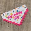 Our bandanas are all made of  100% Cotton and our Birthday range comes with the super cute pom pom trim in your choice of colour with matching colour font – Birthday Boy/Girl.