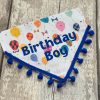 Comes with Birthday Boy/Girl on the front in the colour to match your pom pom trim! The perfect gift for your birthday pooch!